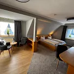 Ziemlich große Zimmer, sehr saubere und luxuriöse Unterkunft, hilfreiches Personal. Ich habe das Zimmer echt genossen, das Bett war komfortabel. Das Essen war sehr gut, und die Speisekarte bot viele Gerichte. Abgesehen davon war die Panorama Erlebnis Brücke 10 Autominuten entfernt. Es war eine großartige Erfahrung.